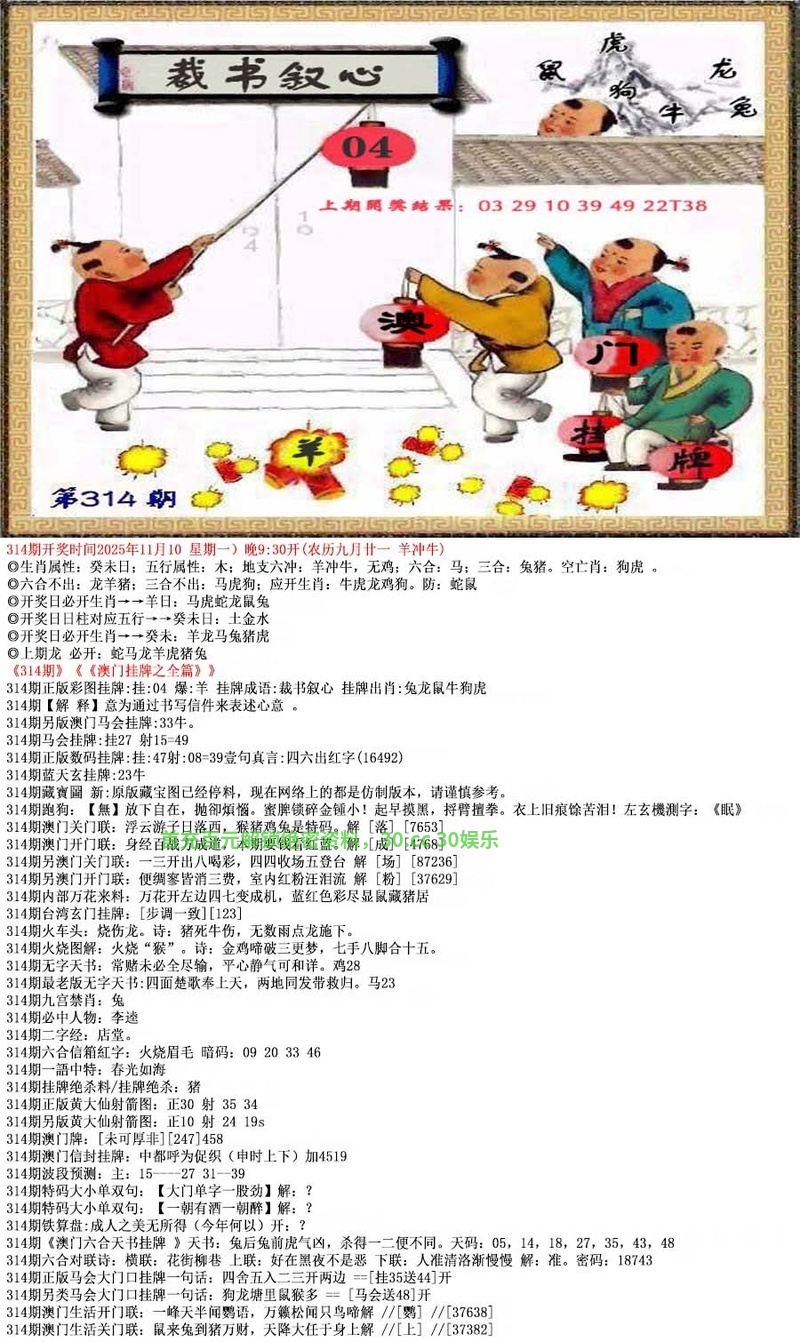 | 314期阳阴两肖【阴肖+羊兔】开:羊23中 |
